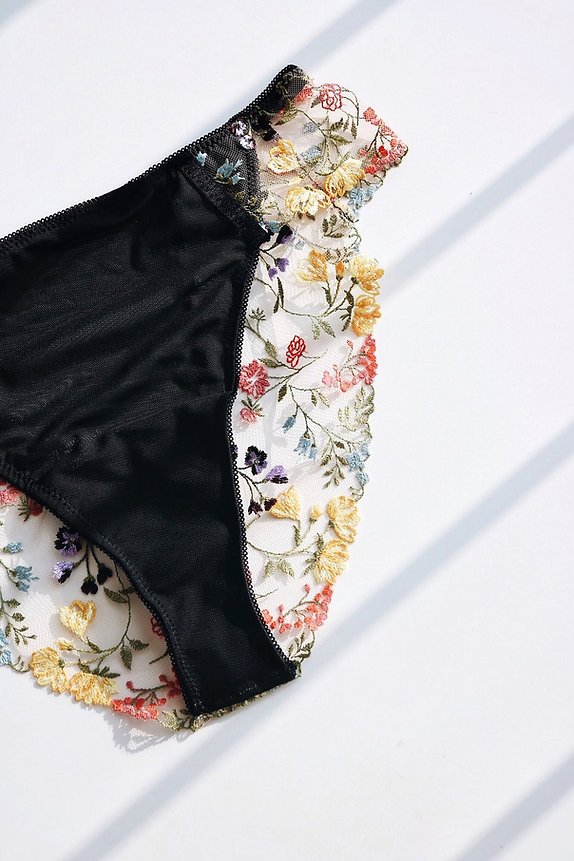 What floral dreams are made of—the Isabella Ouvert Panty is a delicate celebration of sensuality and elegance. Crafted from soft black stretch mesh and feather-light embroidered tulle, this panty adorns your skin with a sprinkling of meadow flowers that wrap gracefully around the hips. The peek-a-boo back features a fully adjustable strap, allowing a customized fit for both comfort and allure. Lined with certified Oeko-Tex® cotton jersey for breathable softness, the Isabella Ouvert Panty is designed to pair beautifully with the matching Isabella Bra and Isabella Choker, completing a look that’s both romantic and captivating.